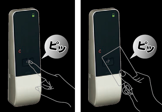 カードまたはテンキー(暗証番号)いずれかの操作で施錠・解錠する【OR認証モード】と、2つの認証を組み合わせることで施錠・解錠する【AND認証モード】を搭載。